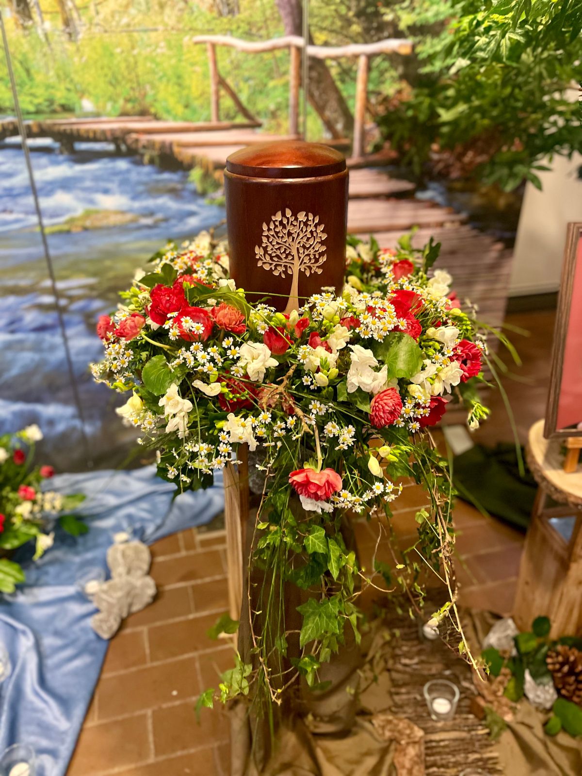 Komplette Gestaltung aus einer HandVon Kränzen und Blumenschmuck bis zur Dekoration der Abschiedsräume oder Friedhofskapellen.